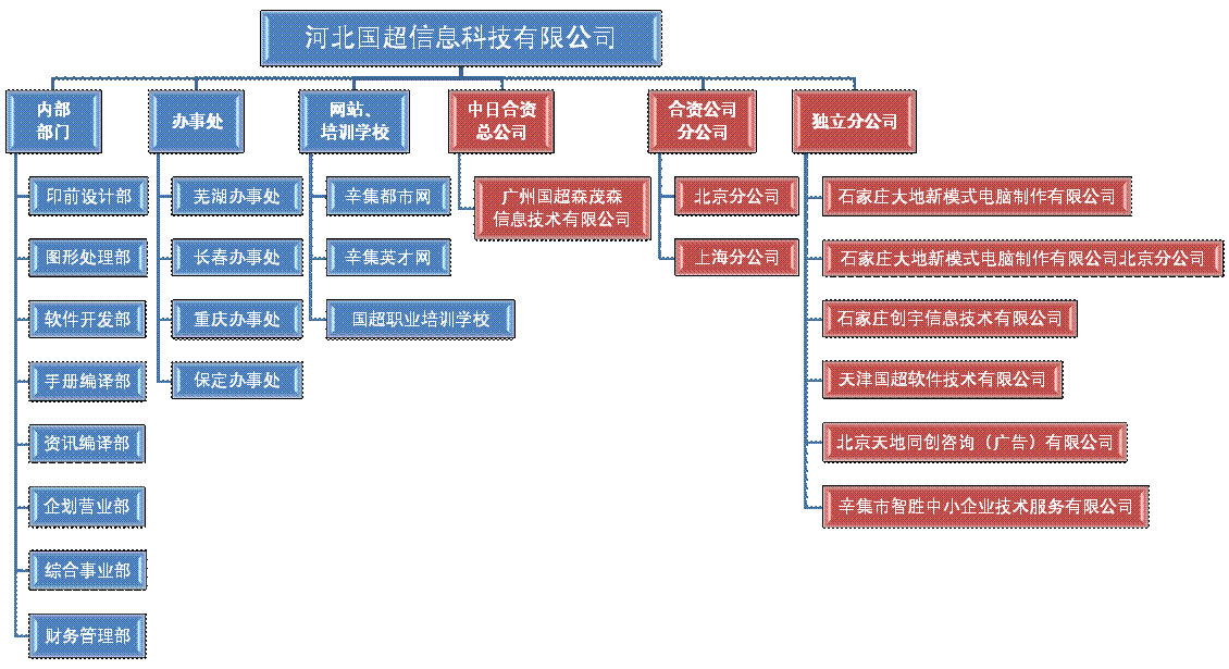 | Guochao New Technology Co. Ltd. consists of eight departments, one agencies and five subsidiary companies, namely, Pre-Printing Design Department, Graph-Managing Department,Software Developing Department, ... |
