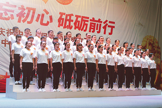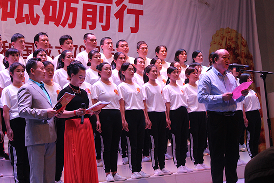 我公司四十余名員工由總經(jīng)理曹艷爽親自帶隊(duì),組成合唱團(tuán)參加了本次演出。公司高層領(lǐng)導(dǎo)高度重視本次演出,為順利完成本次文藝演出,公司黨支部、工會(huì)與各部門負(fù)責(zé)人認(rèn)真組織部署,共先后組織員工精心排演20余次。文藝演出在我公司42名員工激昂、深情的《我和我的祖國》大合唱中拉開序幕,接著我們演唱了熱情、歡快的《洗衣歌》,用歌聲表達(dá)了對(duì)黨和祖國的熱愛,把對(duì)黨的追隨凝聚成力量,用出色的演出詮釋了不忘初心、牢記使命的錚錚誓言,獲得在場(chǎng)觀眾和領(lǐng)導(dǎo)的高度贊譽(yù)。